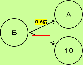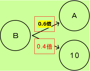 例1「AはBの 0.6倍 で、残りは 10m です。」
