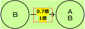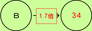 例2「AはBの 0.7倍 で、AとBを合わせると 34kg です。」