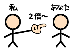 「あなたのペンは、私の2倍です。」と言うときは、私から見て、あなたのペンの数は2倍だ、ということです。