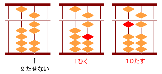 ひけない 9 は、10 ひいて、1 をたす。