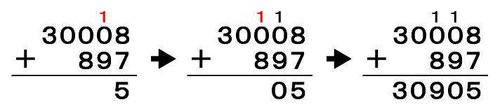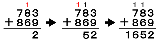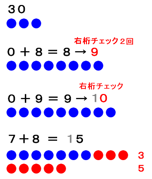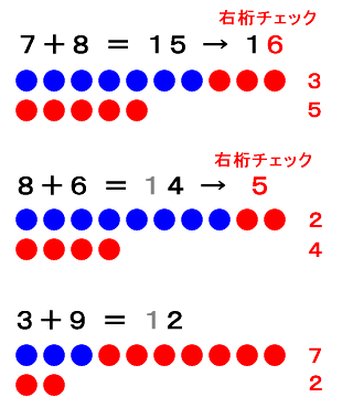 右桁チェックで、くり上がりがあるときは、計算している桁で 1 をたします。
