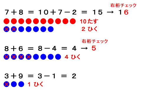 右桁チェックが 9 になるとき(0+9 や 1+8 など)は、さらに右桁をチェックします。