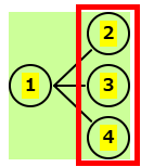 | 残りは 2,3,4 | 1-2の後、残りは 3,4 | 1-3の後、残りは 2,4 | 1-4の後、残りは 2,3 |