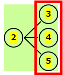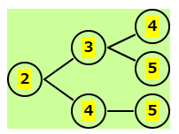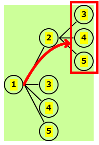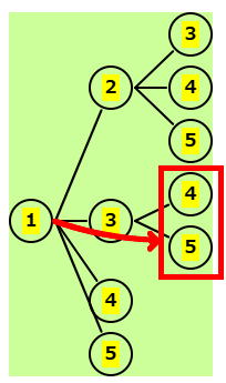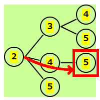 | 残りは 3,4,5 | 2-3の後、残りは 4,5 | 2-4の後、残りは 5 | 2-5の後はないので、正解は下の図 |