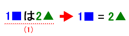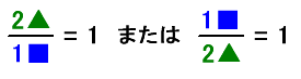 例えば(1)なら、1■2▲ は、見た目はちがうけど等しいので、分数で表すと 1 です。つまり、