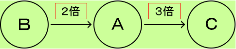 「AはBの2倍で、CはAの3倍です。」の図は、下のようになります。