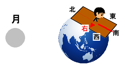 2.月の見える方角がいい感じになるように、[地球の自転]ボタンで地球を自転させます。